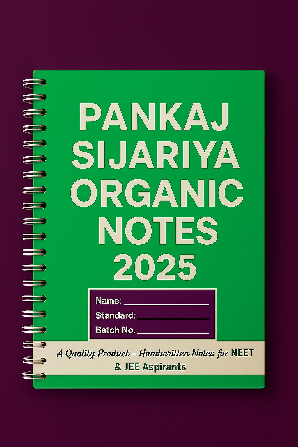 The Pankaj Sijariya Organic Notes 2025 are comprehensive handwritten notes covering the entire Organic Chemistry syllabus for NEET & JEE (Main + Advanced).