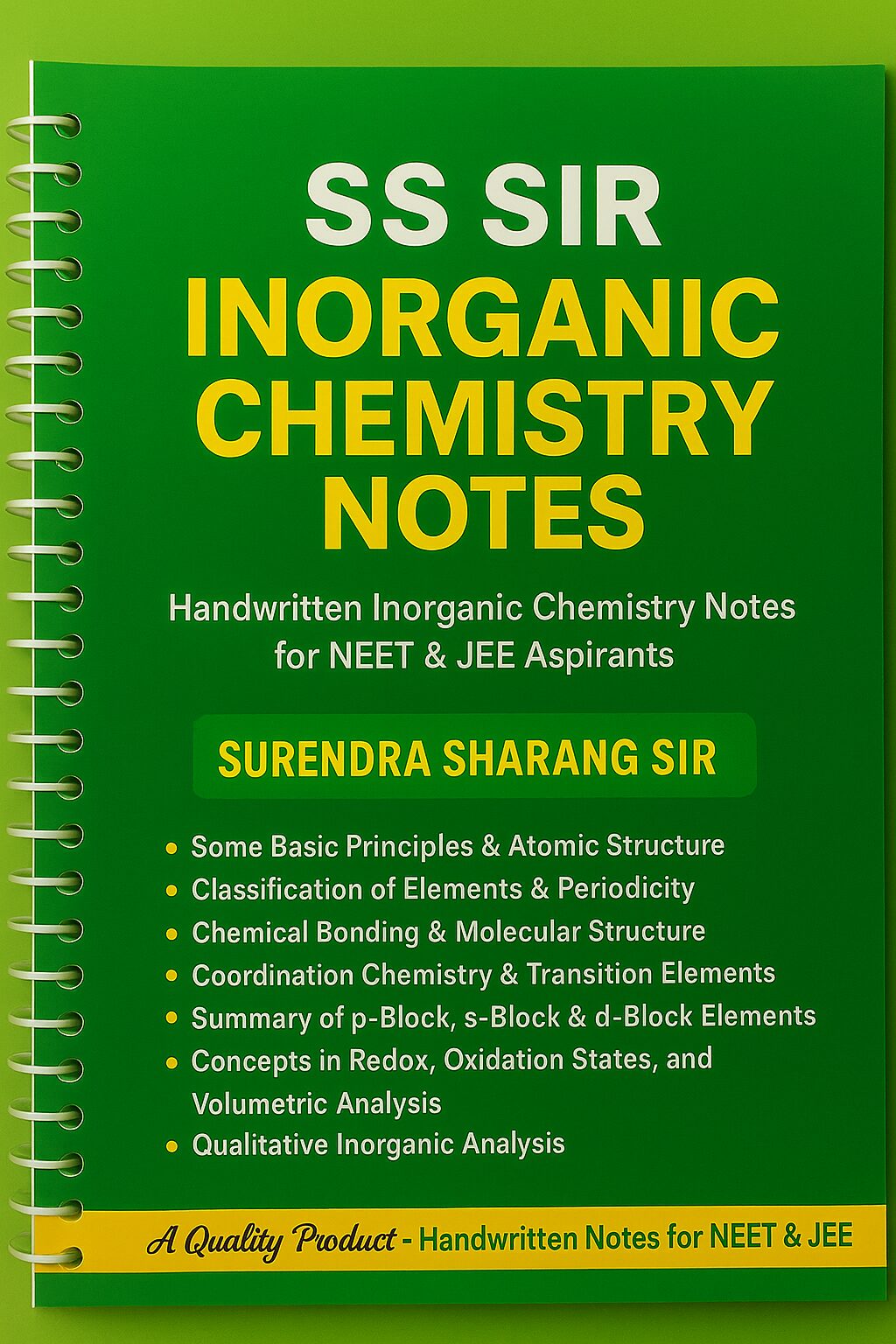 Whether you’re grappling with electronic configurations, oxidation states, or coordination chemistry, SS Sir Inorganic Chemistry Notes become your trusted partner—handwritten, well-structured, and aligned perfectly with NEET & JEE’s challenges.